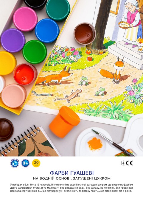 довго залишатися густими та малювати без додавання води. Без запаху, не токсичні. Вся продукція